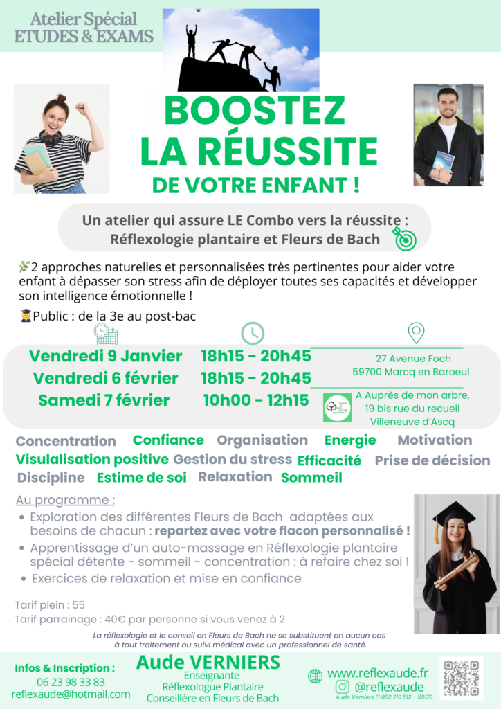– explorer ce qui t’empêche de développer ton potentiel scolaire et t’aider à devenir qui tu veux être et comprendre comment les Fleurs de Bach peuvent te soutenir.